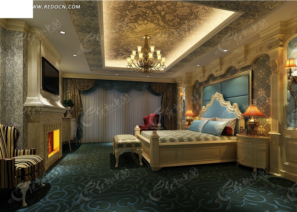 欧式卧室灯装修设计图片大全_装信通网效果图