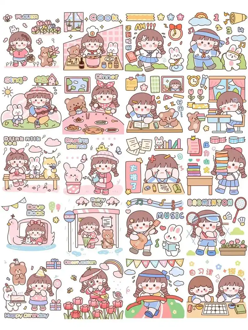 手帐素材图片 #可爱头像女卡通呆萌 - 抖音