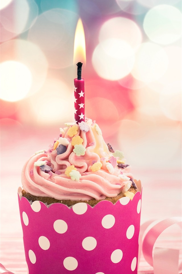 粉红色的蛋糕,蜡烛,丝带,眩光,生日 4k