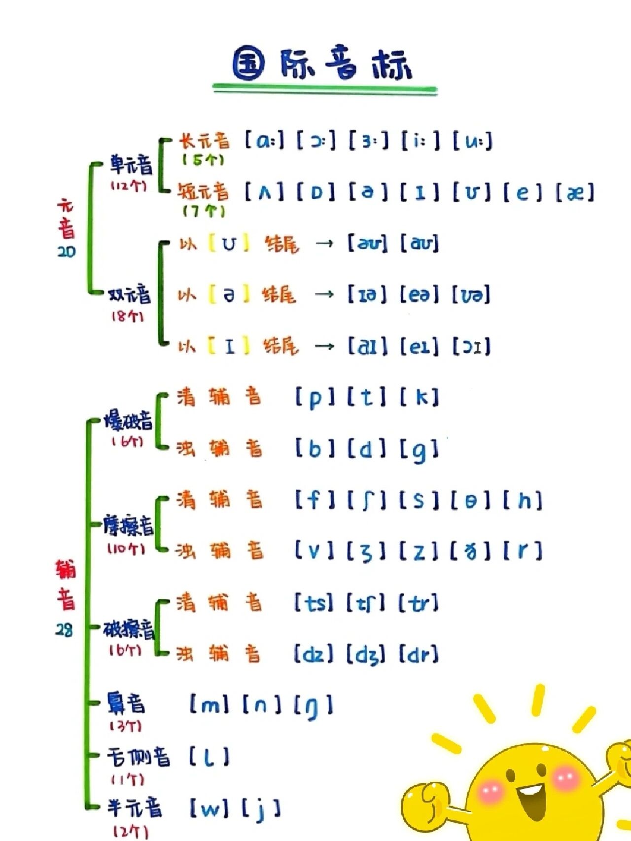 【48个音标谐音记忆】 78 音标一共有48个:元音音标20个,辅音音标28