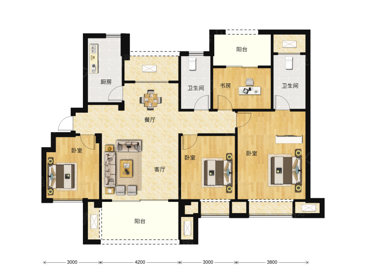 祥源文旅城115.00㎡祥云府户型4室2厅2卫1厨-副本-副本