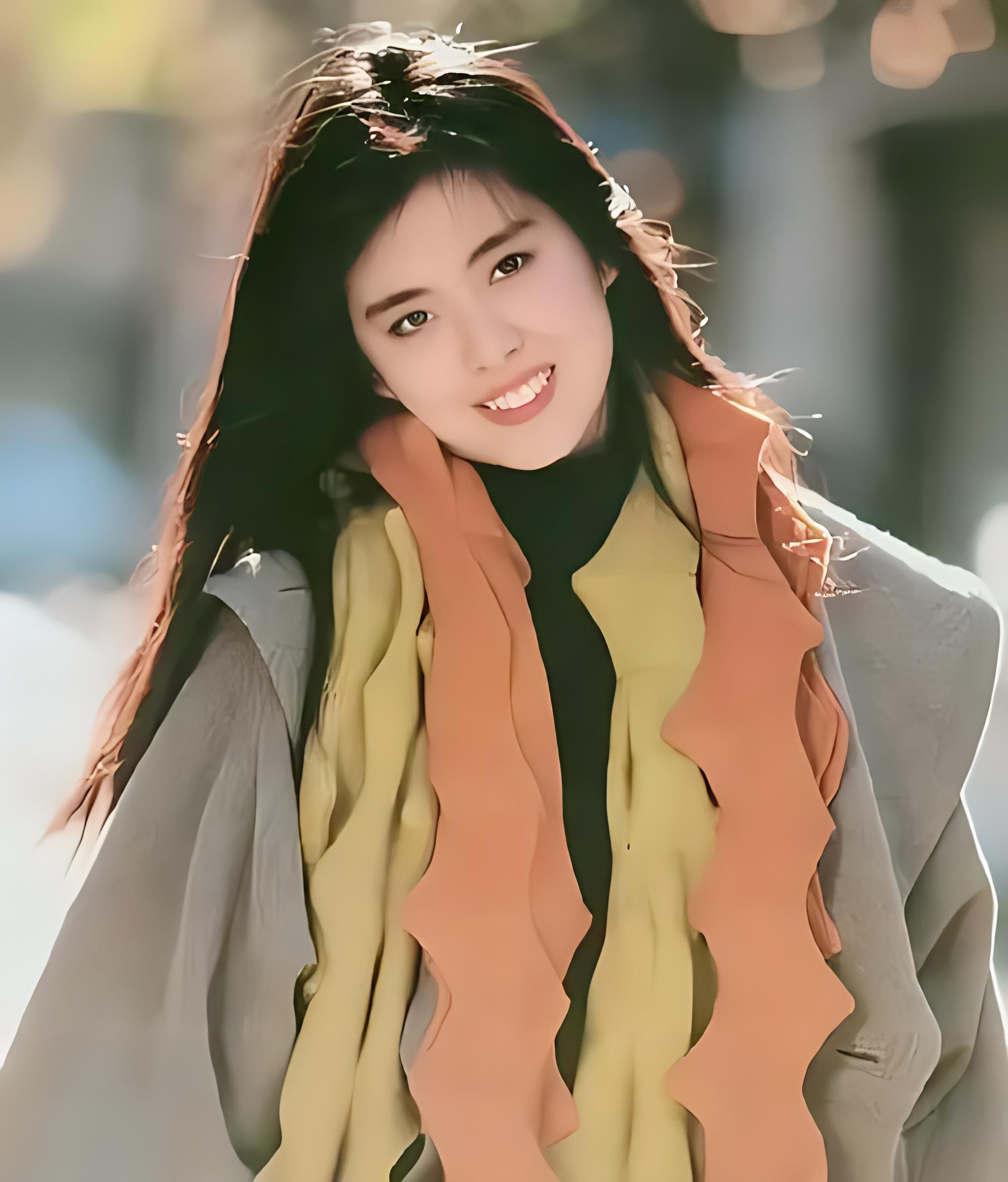 这是一张90年代上世纪女演员的照片.她年轻漂亮,眼睛明亮,牙齿洁白.