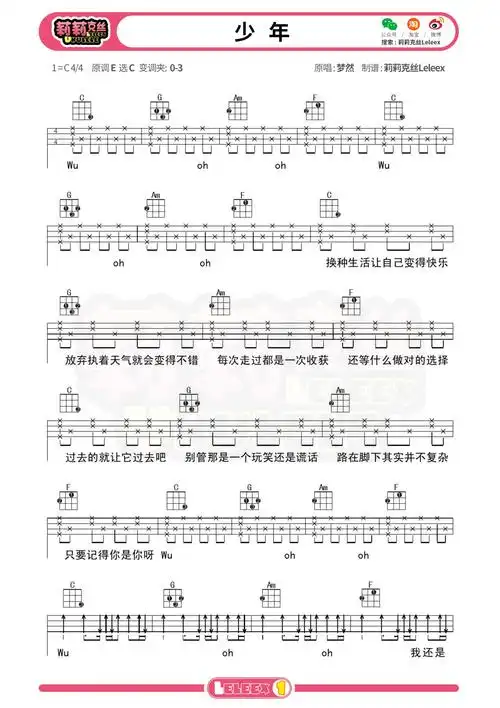 《少年》尤克里里弹唱谱-梦然 莉莉克丝leleex