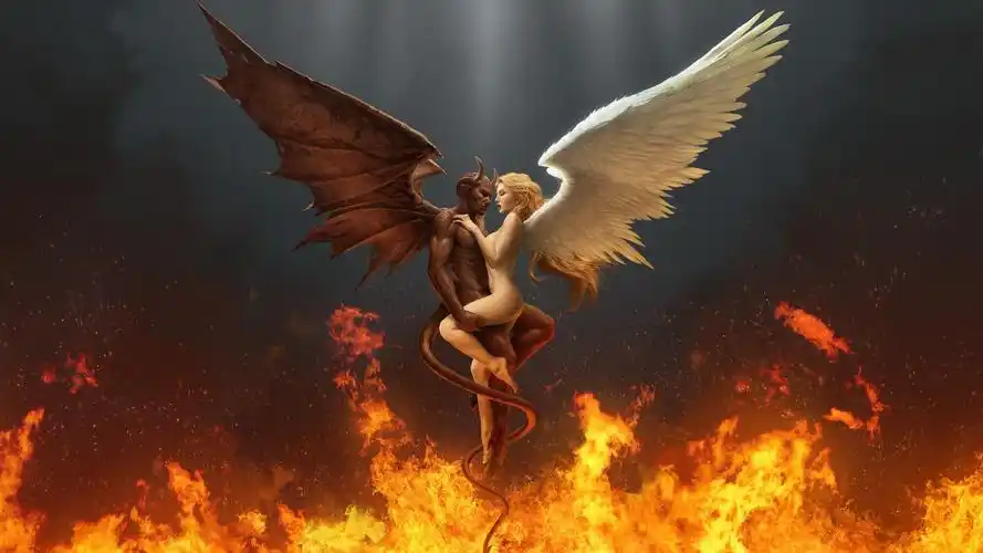"ai绘画:天使与恶魔的情感对白"_地狱_人性_天堂