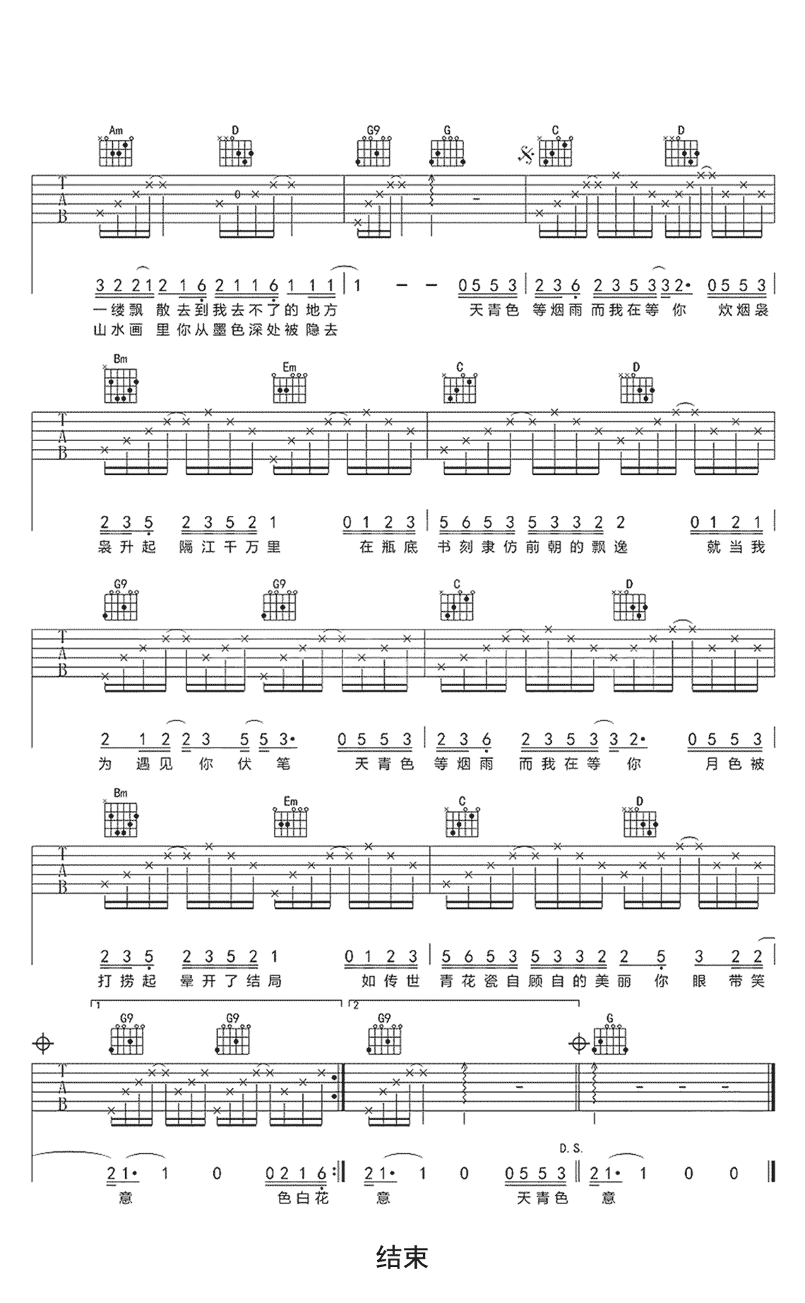 周杰伦《青花瓷》吉他六线谱(完整版)