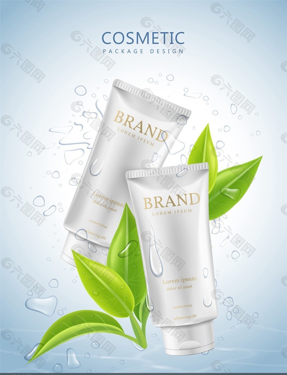 天然水润植物萃取护肤品宣传海报矢量素材