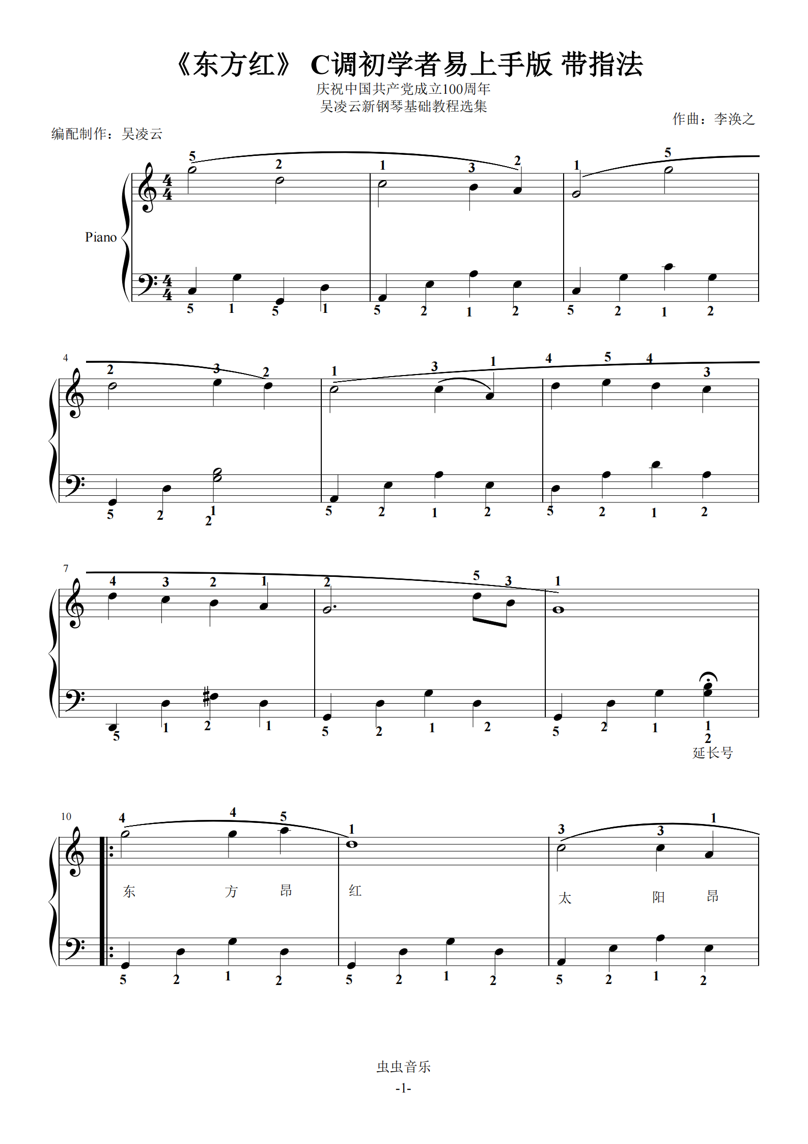 东方红c调初学者易上手版带指法吴凌云新钢琴基础教程选集