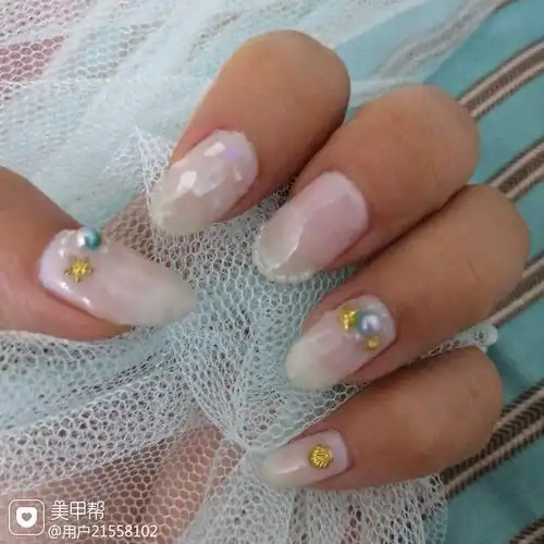 尖形贝壳片短指甲琉璃白很干净美甲图片