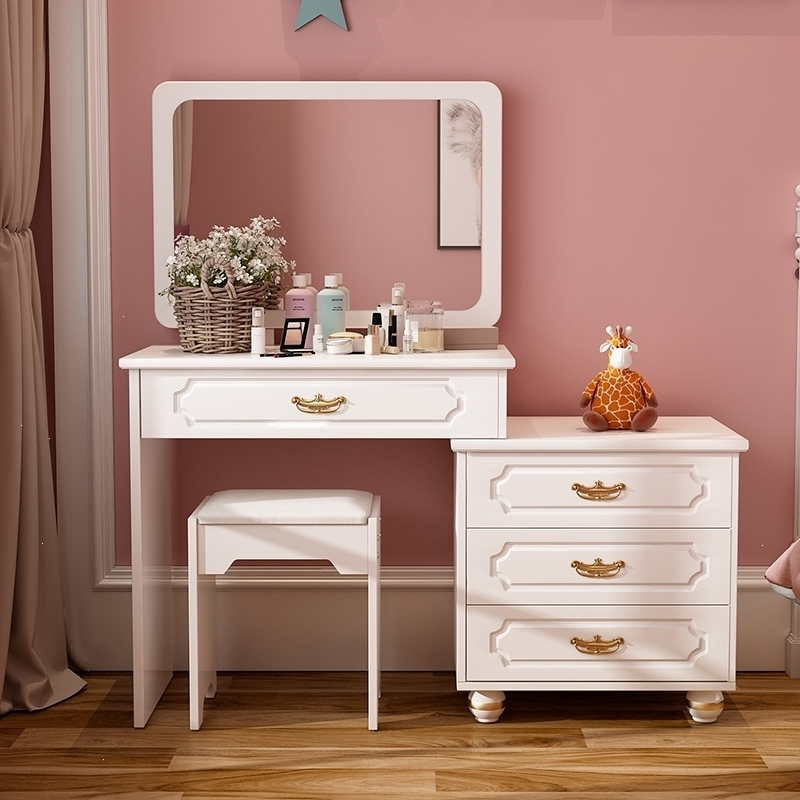 化妆桌梳妆台卧室现代简约小户型轻奢网红欧式化妆台收纳一体组合款