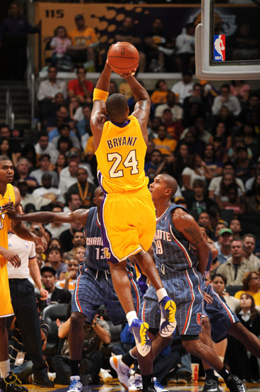 图文季前赛湖人9187山猫科比飞身跳投