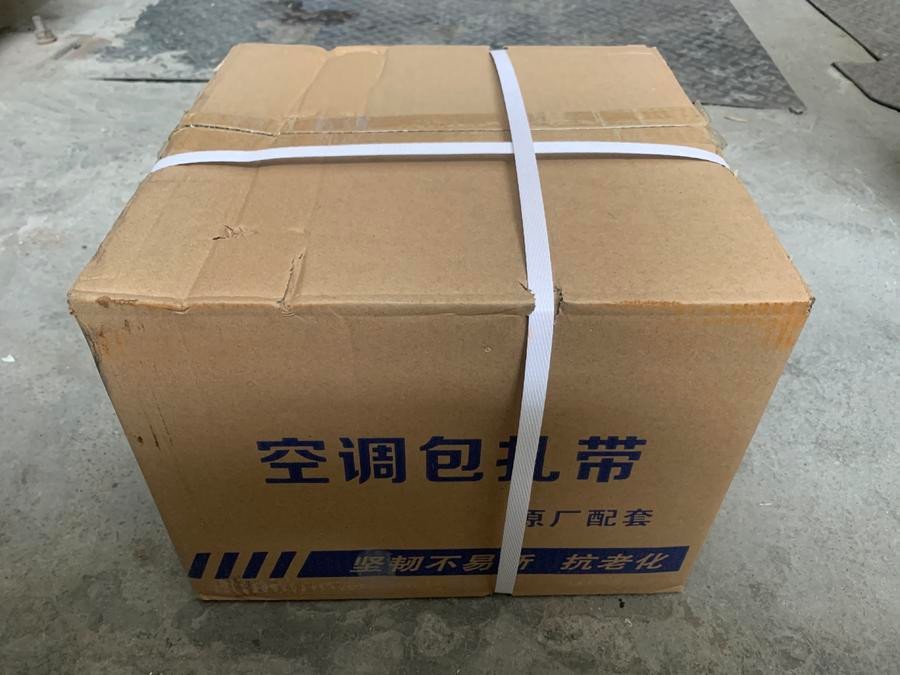 今天已经到达并签收后可以看到外包装箱用打包带打包好,这样做的目的