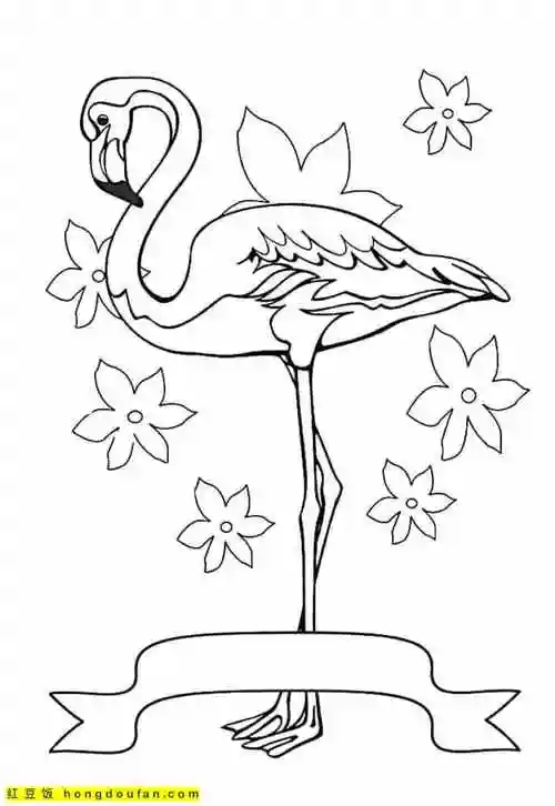 12张象征着忠贞爱情的粉红色火烈鸟卡通涂色图片-红豆饭小学生简笔画