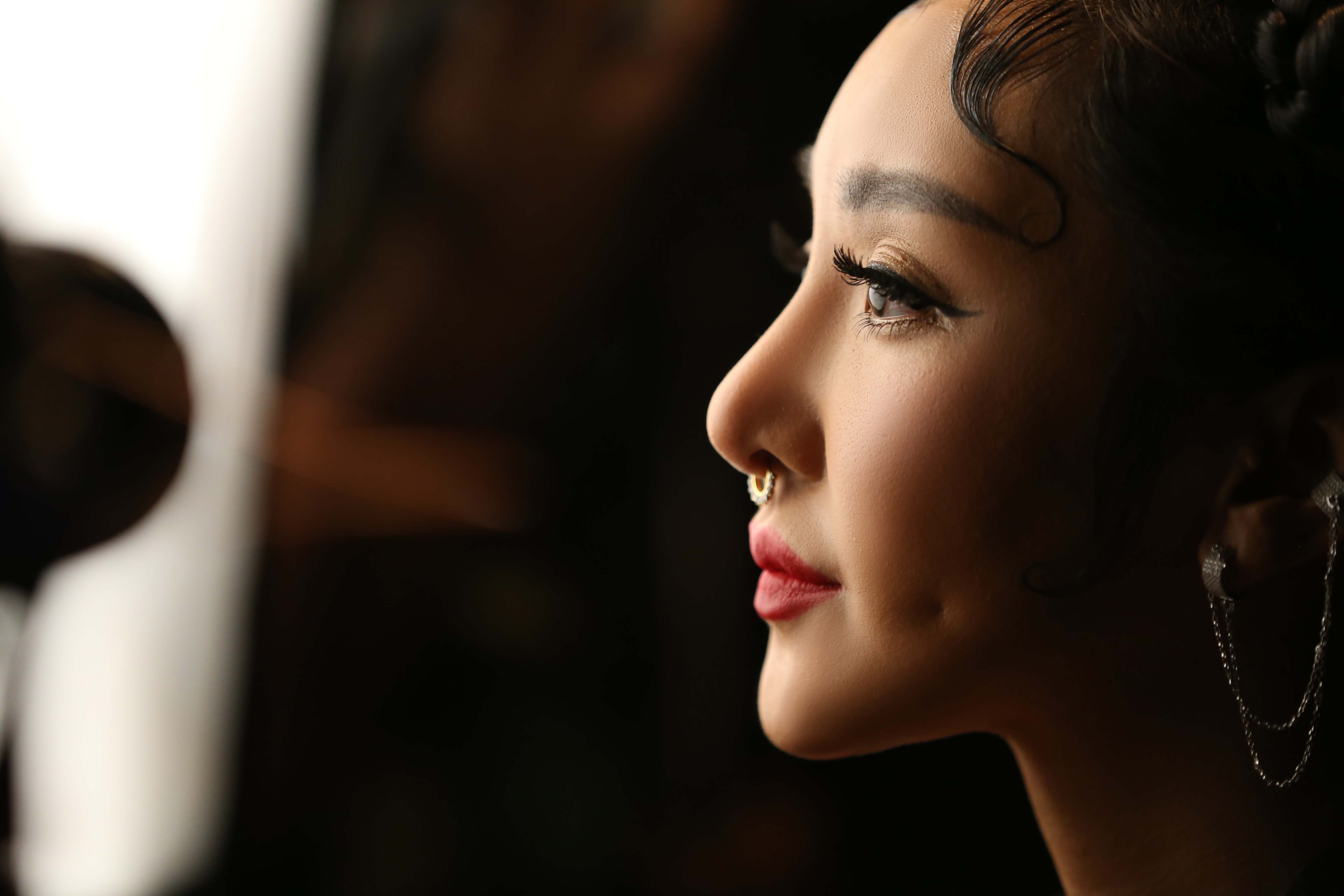 照片中的女孩,如黑曜石般深邃的眼神,神秘而独特.