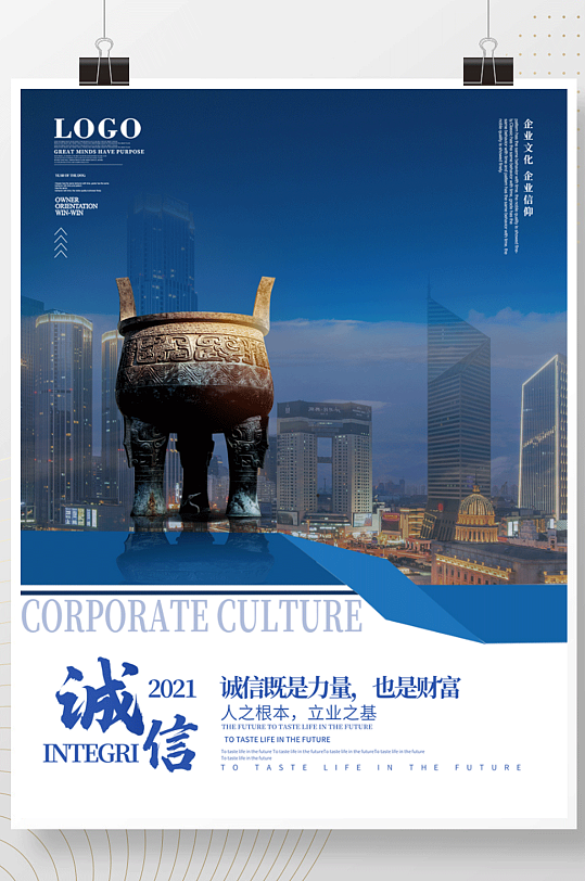蓝色商务企业文化标语系列宣传海报