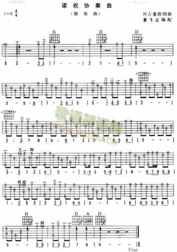 梁祝吉他谱梁山伯与祝英台g调吉他图片谱1张