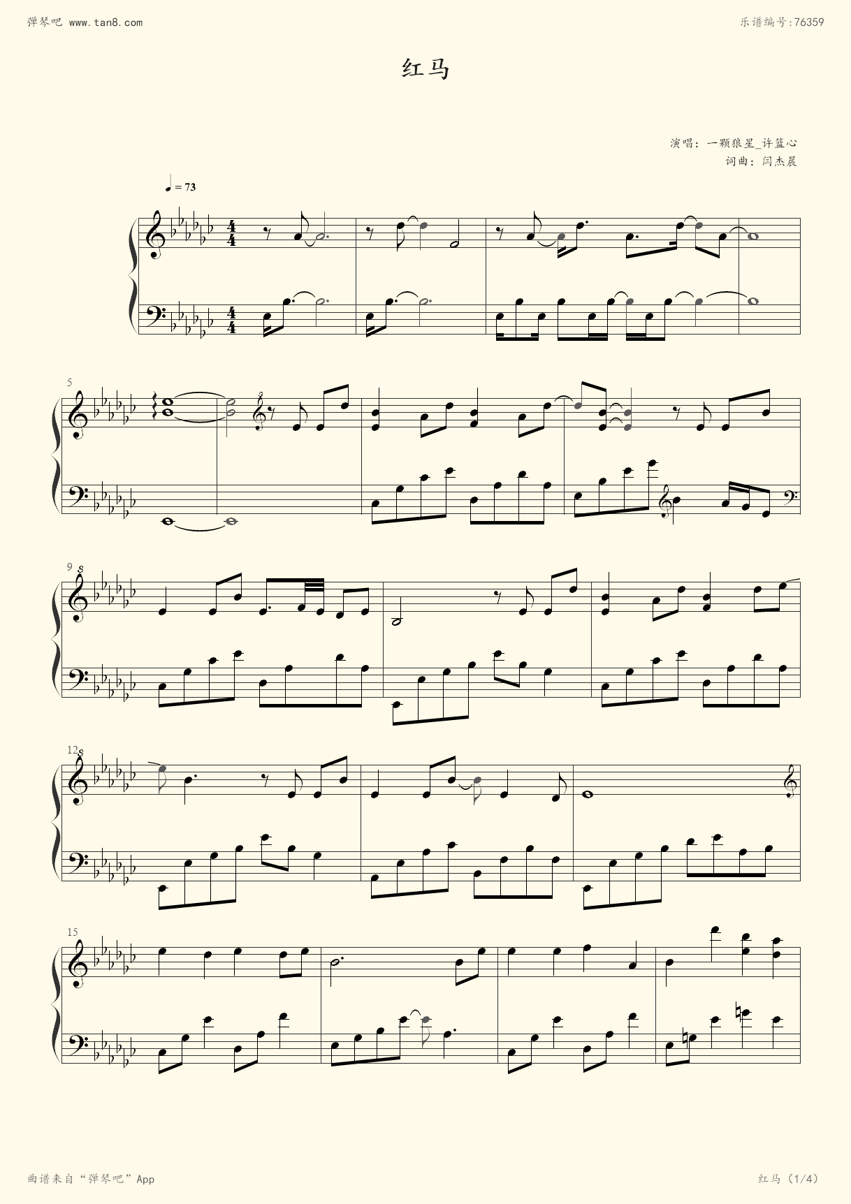 红马钢琴简谱-一颗狼星_许篮心演唱2