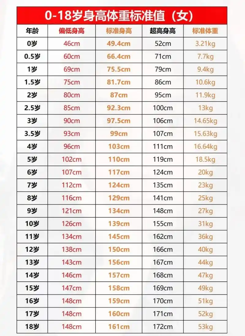 女宝宝体重身高标准表