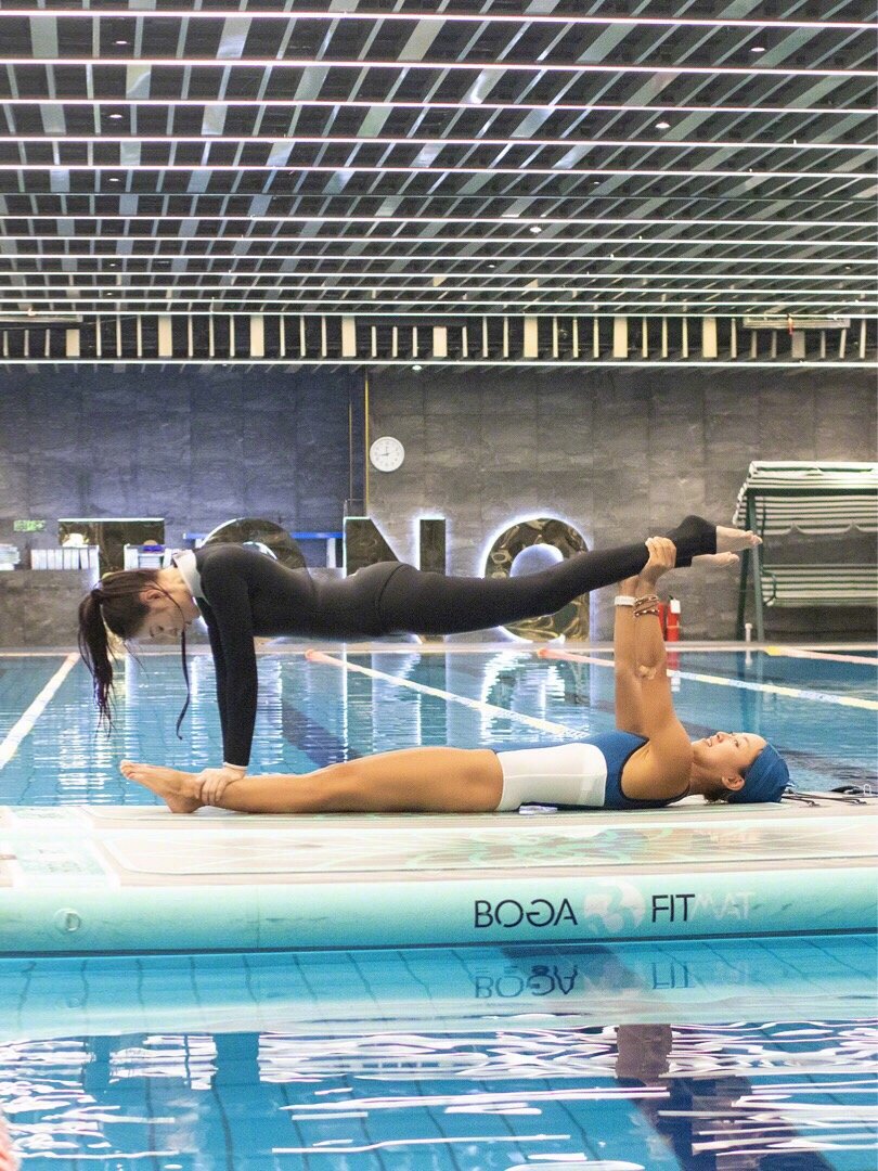 张天爱西装泳衣身材吸睛挑战水上瑜伽却惊险溺水
