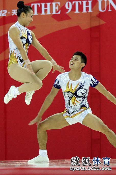 组图:大运会健美操混双决赛 队员比赛深情凝视