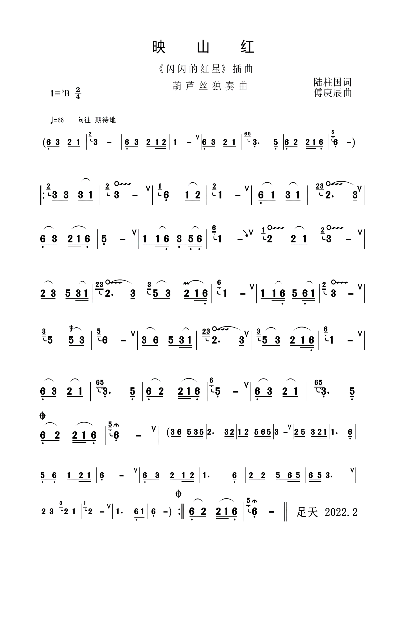 《映山红》简谱(葫芦丝版)