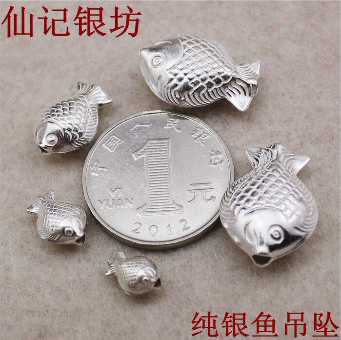 小鱼银鱼s999纯银男女吉祥富贵鱼吊坠 diy红绳手链 银饰项链配件