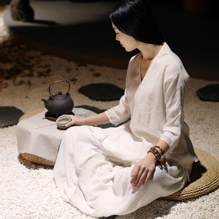 中式禅修服棉麻汉服白色打坐禅服瑜伽服气质风茶道服女套装夏
