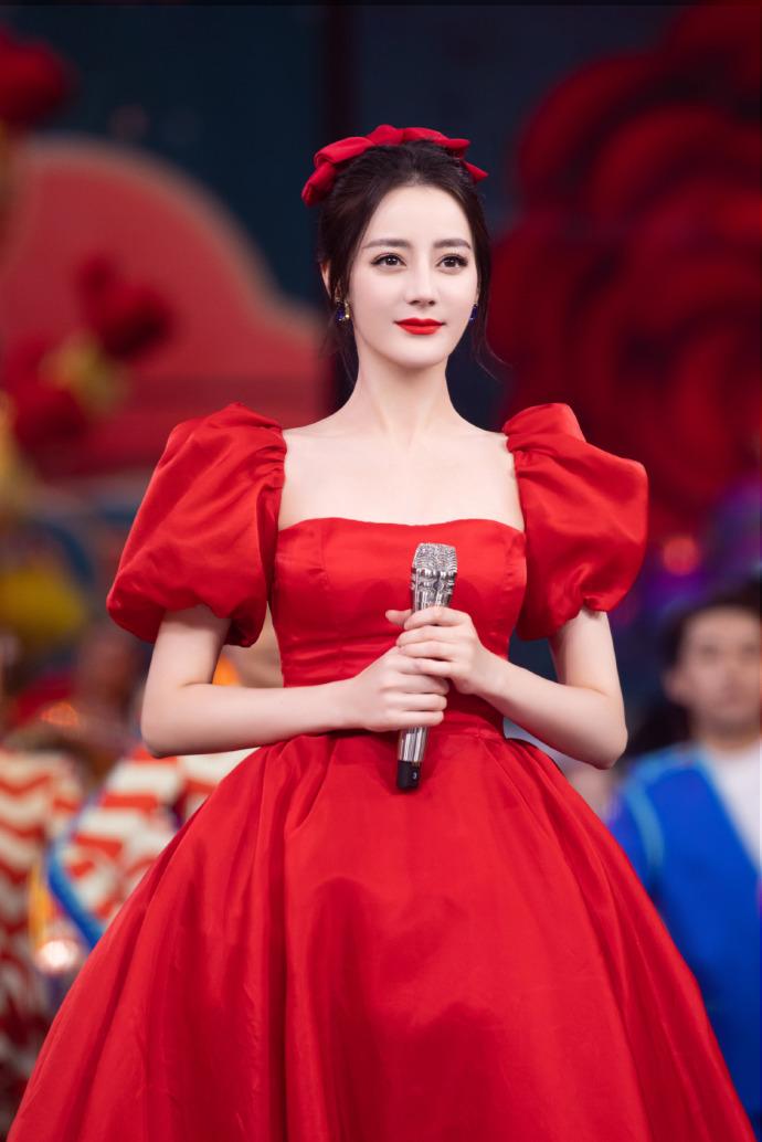 迪丽热巴太精致,穿大红色礼服裙秀身姿,迷人又好看!