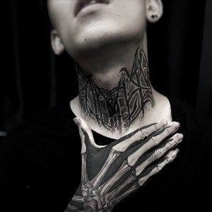 颈部纹身男暗黑系颈部纹身