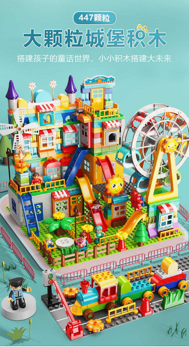 费乐摩天轮游乐园447大颗粒积木diy风车城堡场景拼装益智玩具批发