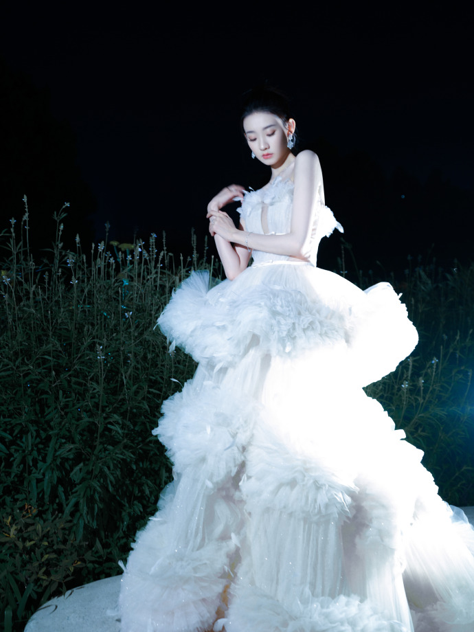 纯白蛋糕礼服裙,凡凡一笑花绽放#美女# #张艺凡