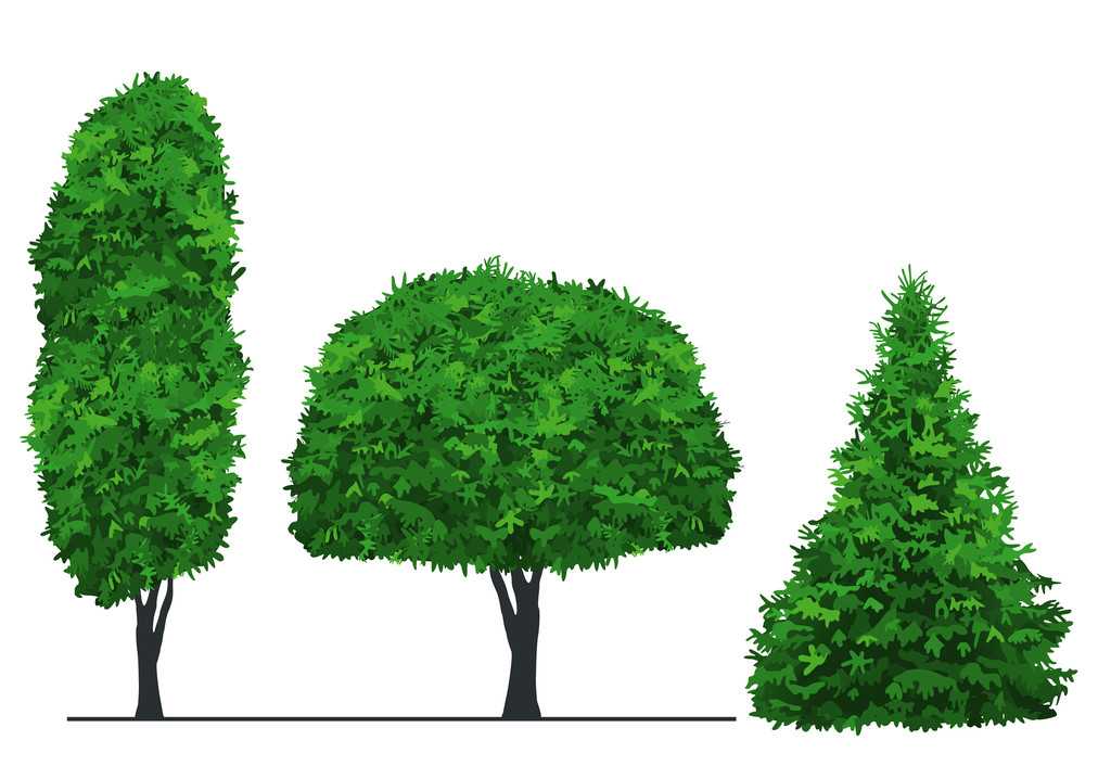 绿树,在绿色的叶子,孤立的白色背景上的三个树上设置