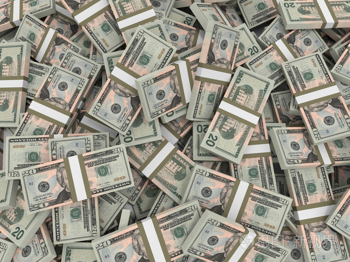 成堆的钱二十美元