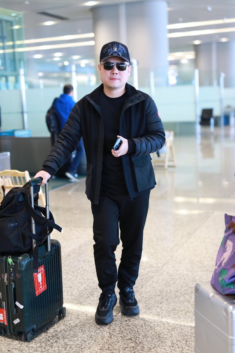 "德云一哥"走机场,黑色造型时尚大方,全身都瘦唯独脸一点没变_岳云鹏