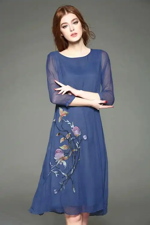 【真丝连衣裙图片】2018夏季真丝连衣裙穿搭图片 妈妈装高档真丝