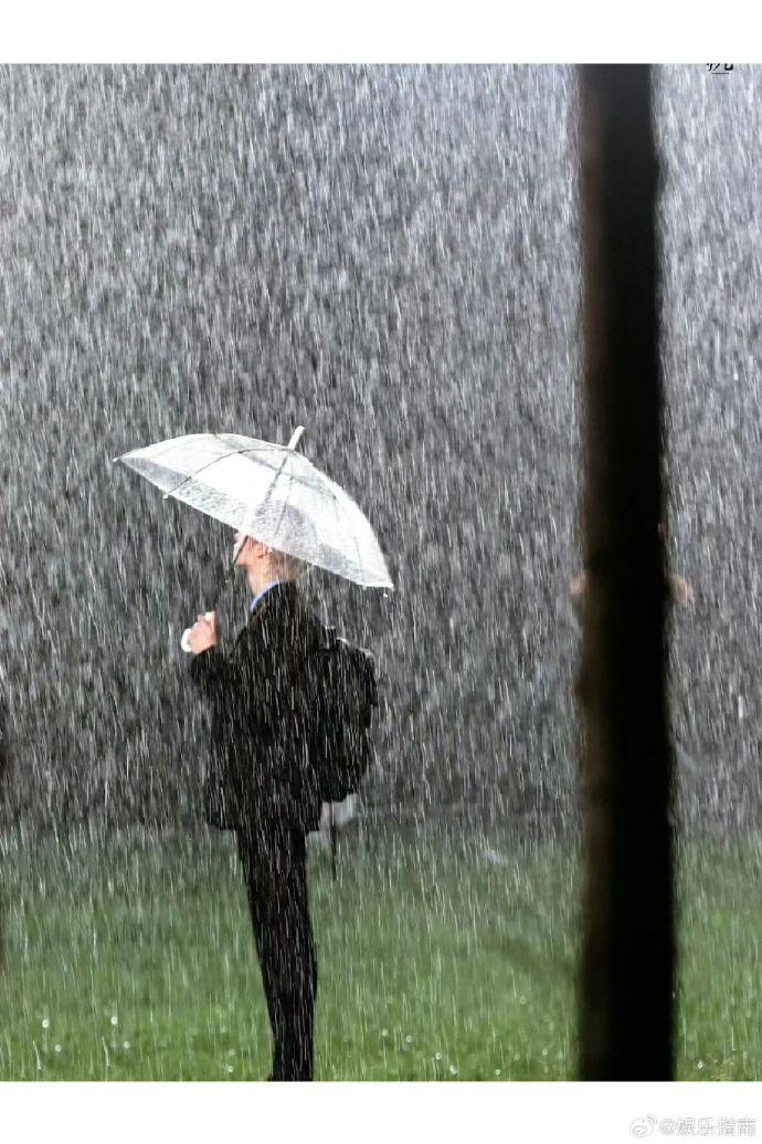 刘雯雨中撑伞大秀锁骨,无与伦比的高挑身材,有着独特的韵味