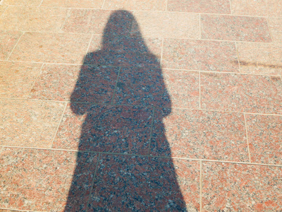 一个人在大理石板上的影子.人行道上的人的影子照片
