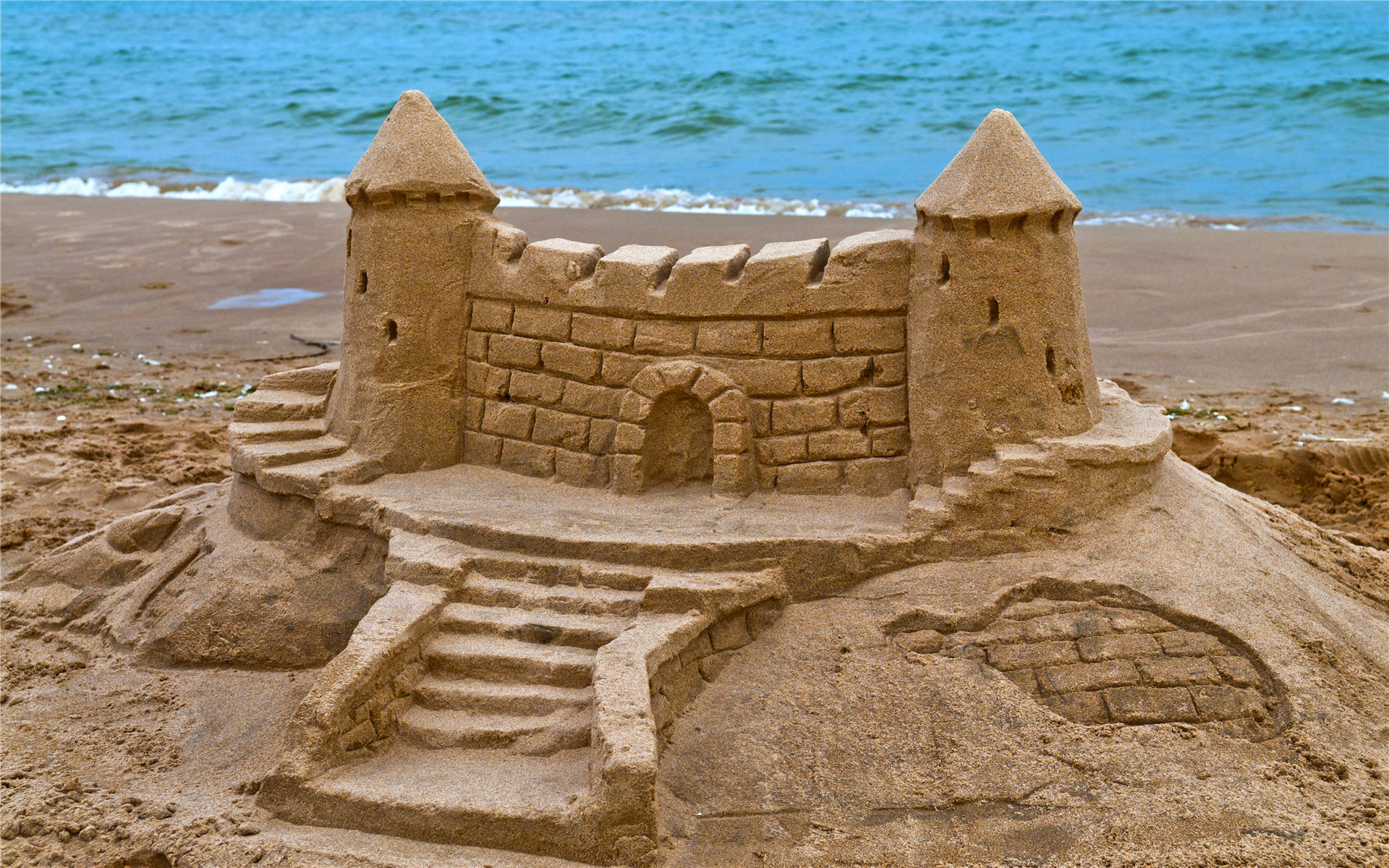 沙滩上的沙雕城堡高清桌面壁纸
