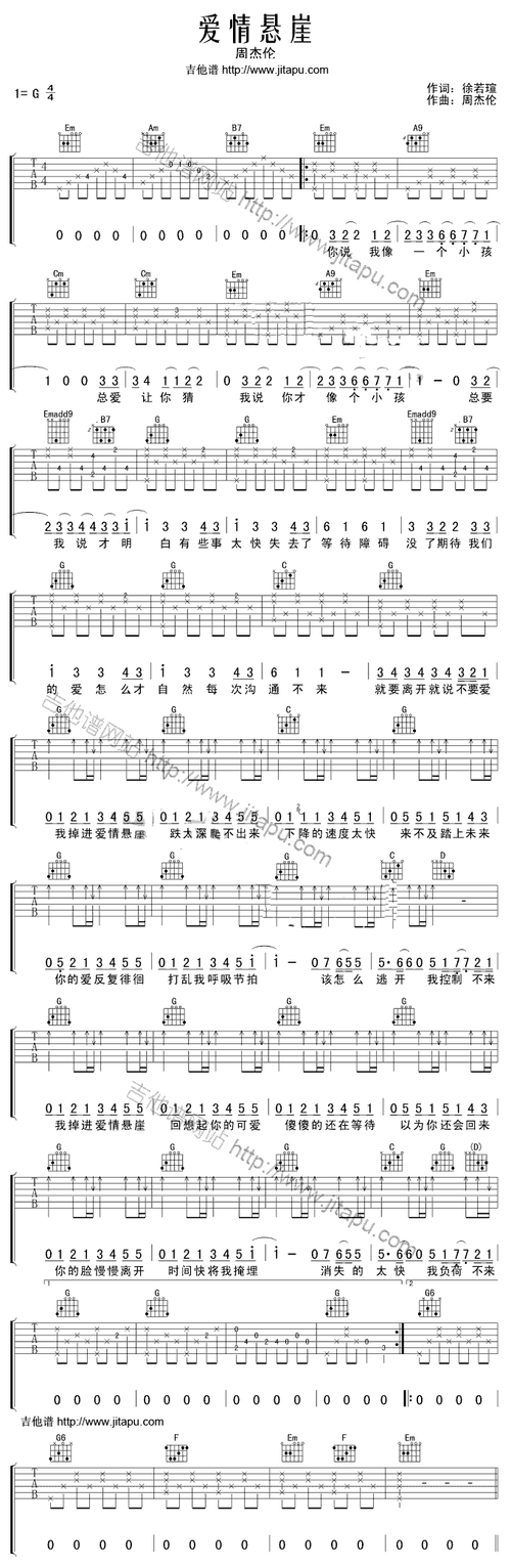 周杰伦《爱情悬崖》吉他谱_吉他谱_简谱_尤克里里_吉他谱下载_吉他