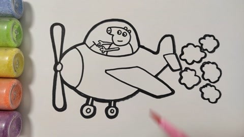 儿童简笔画教程,画小猪佩奇开飞机,3-12岁小朋友学习画画