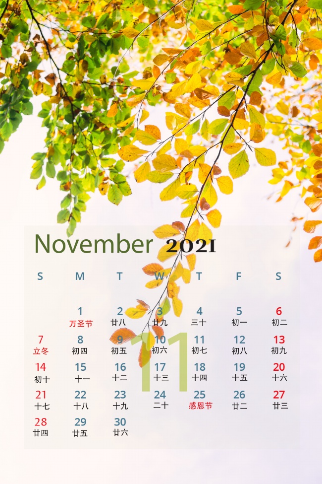 日历壁纸|2021年十一月日历壁纸