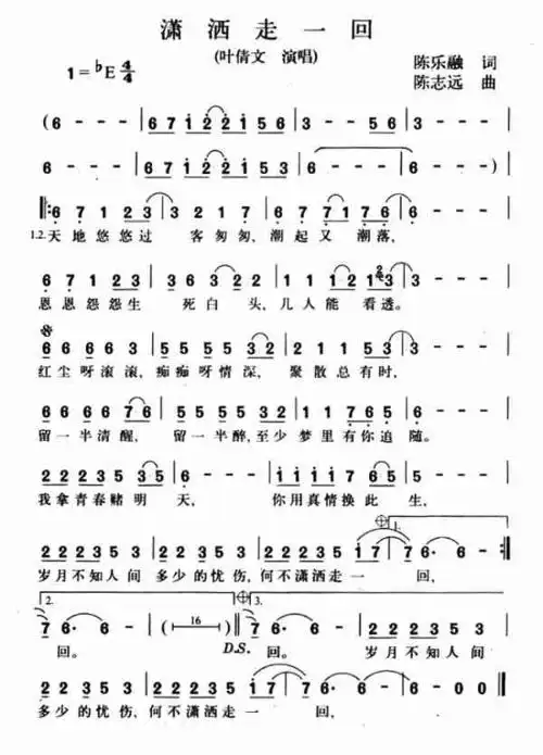 潇洒走一回简谱-叶倩文演唱-陈乐融,王蕙玲/陈大力,陈秀男词曲1