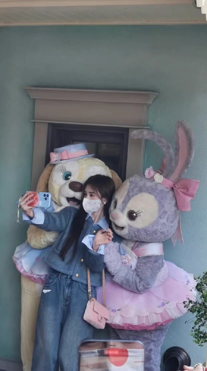 星黛露薅鞠婧祎头发 鞠婧祎在迪士尼和饼饼露露贴贴,好甜美的画面