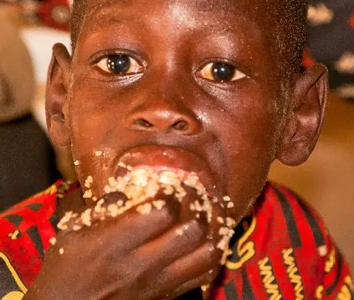 人叫anja,是非洲儿童援助教育发展基金会的成员,她正在给一个虚弱饥饿
