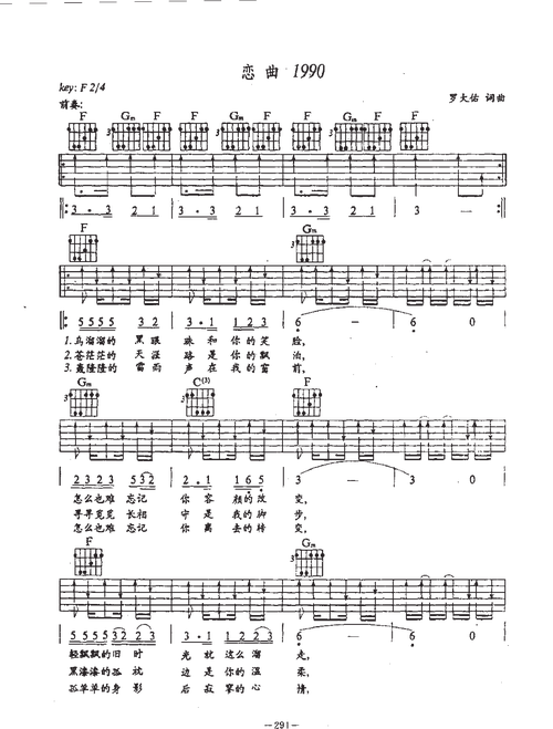 恋曲1990吉他谱罗大佑f调