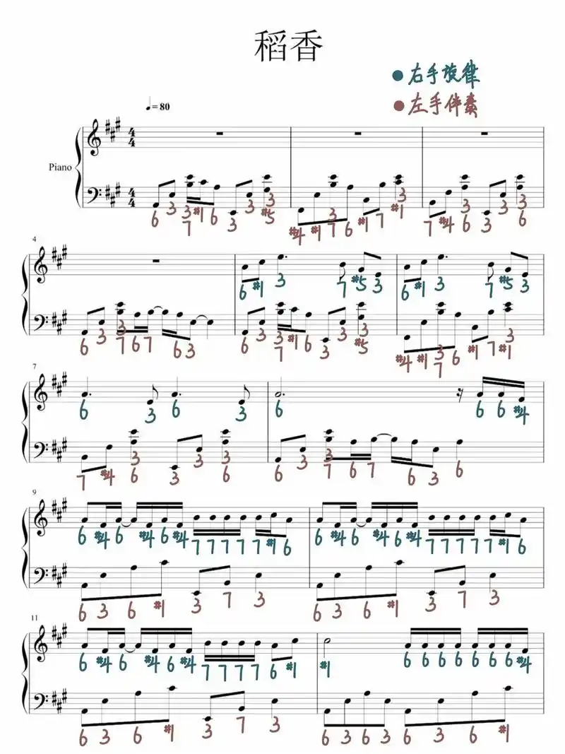 周杰伦《稻香》钢琴谱(附双手简谱)~|||调号:升 - 抖音