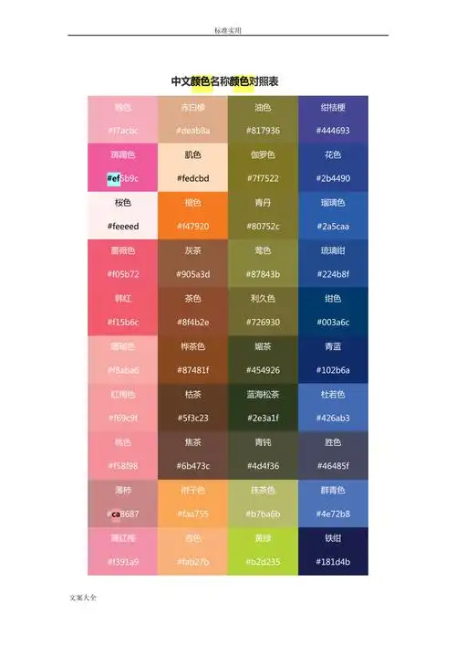 颜色名称对照表
