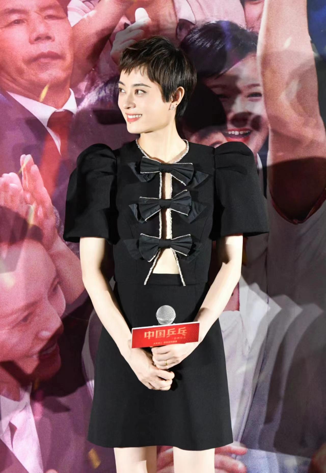 孙俪又剪耳上短发配一身黑西装出席活动男相十足脸好长