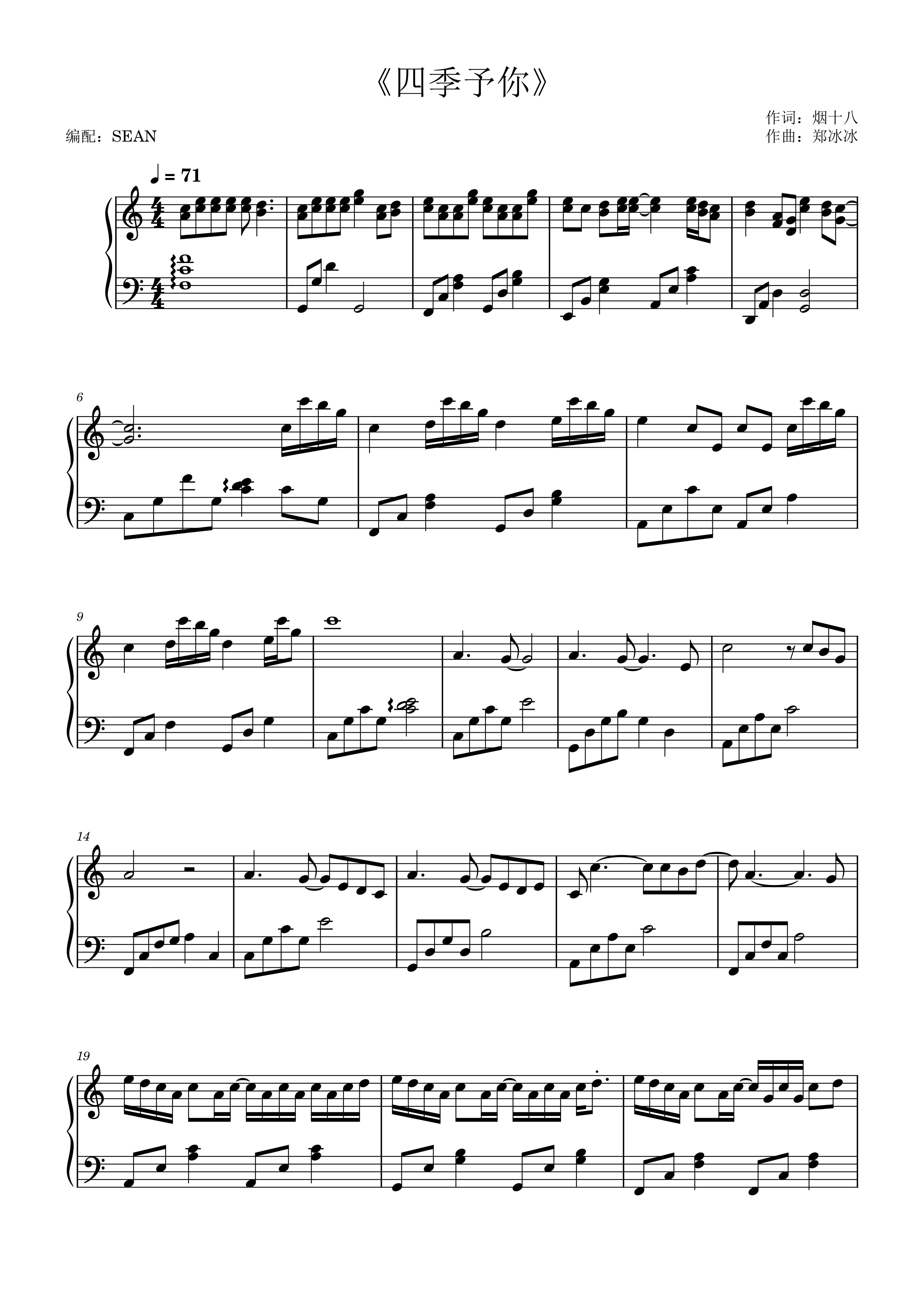 《四季予你》程响-c调 『 sean 编配 』唯美版钢琴谱-虫虫钢琴