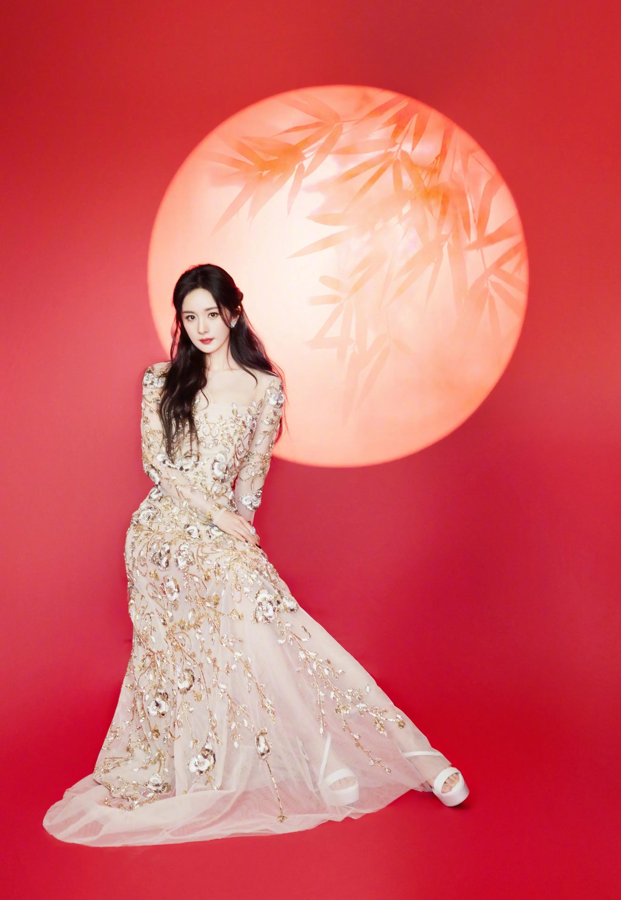 杨幂金色刺绣纱裙将喜气渲染得淋漓尽致