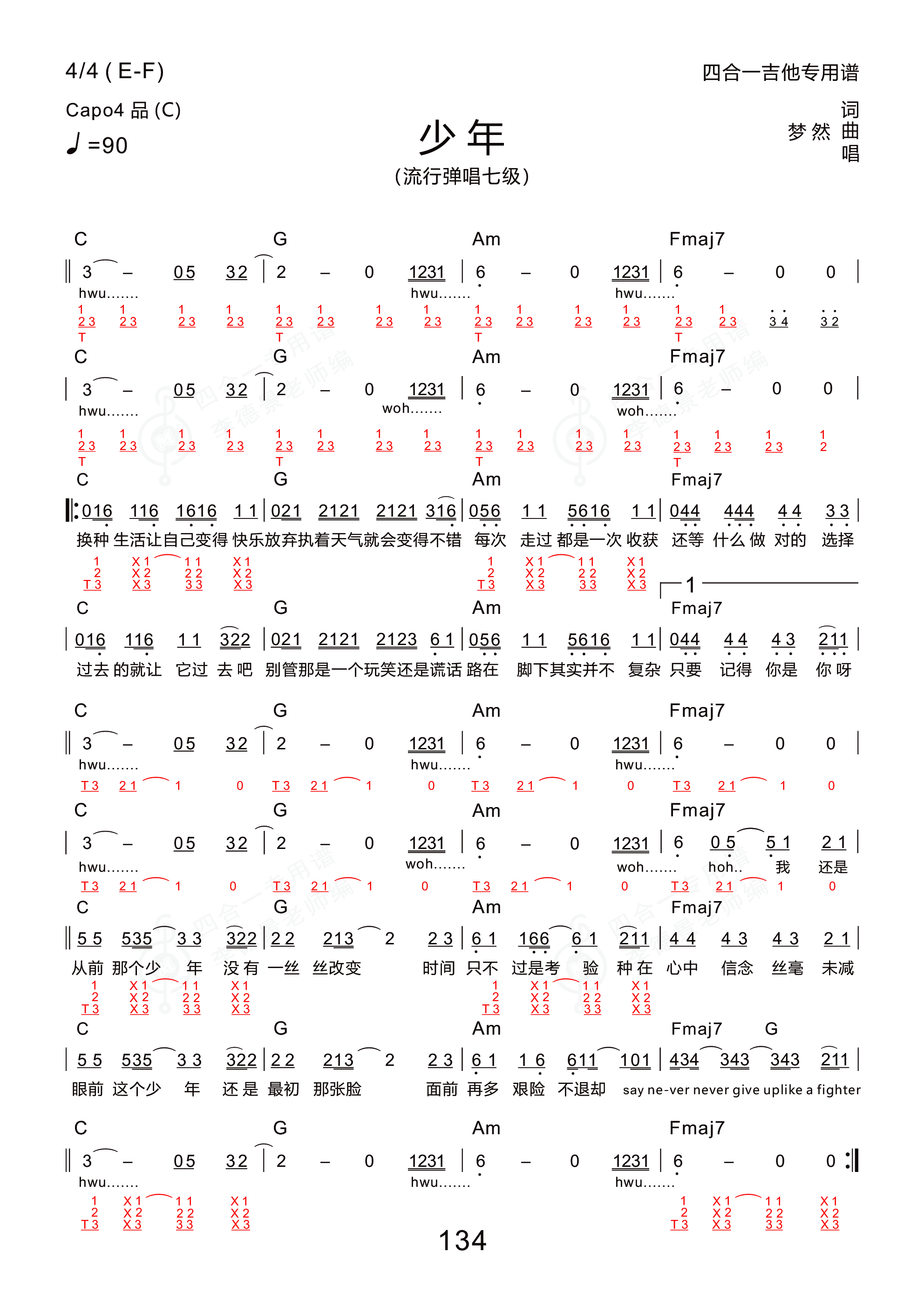 少年 (新四合一吉他专用谱)